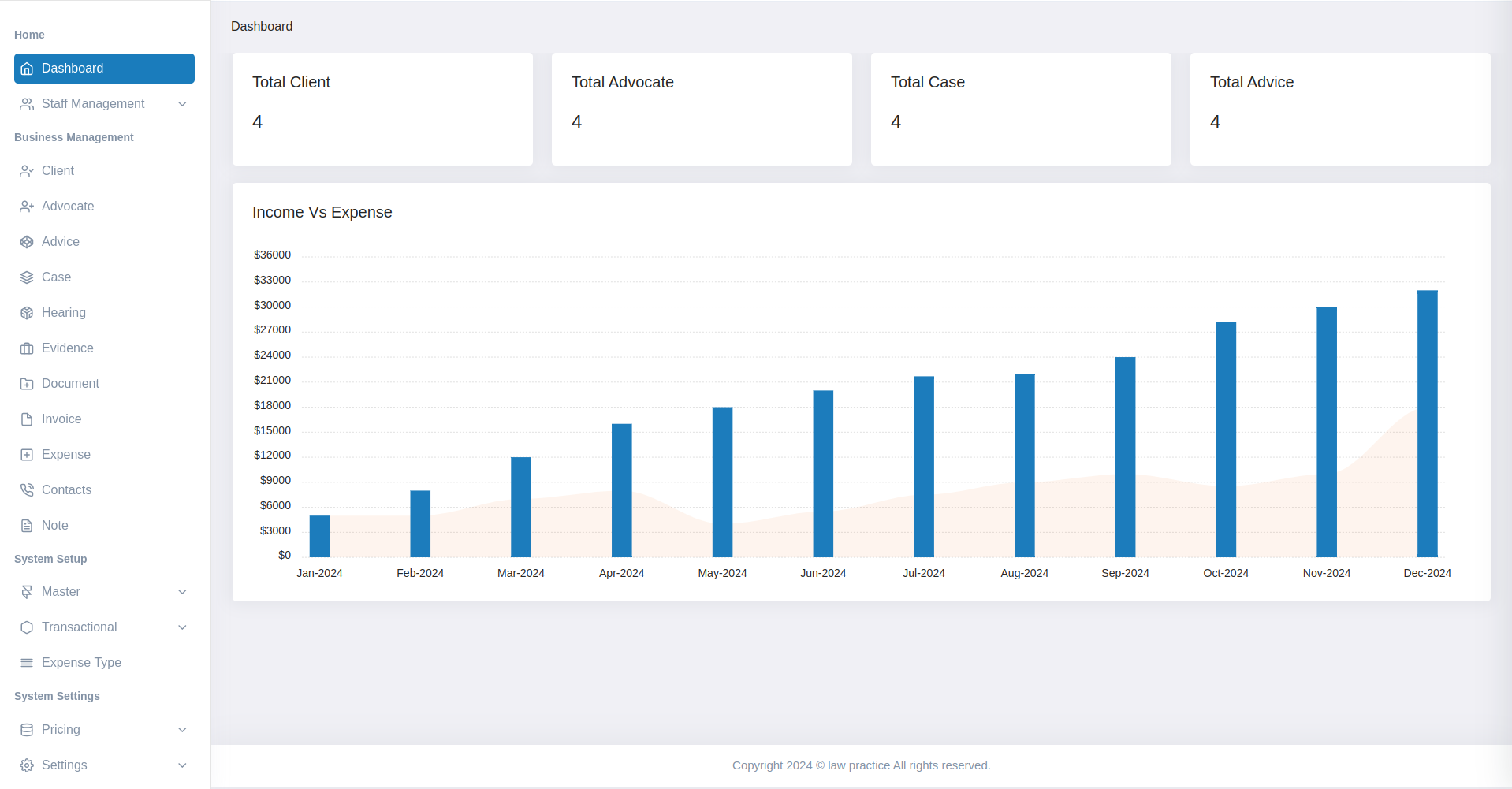 An Legal Advocate & Counsel Manager is a comprehensive software solution designed to streamline and enhance the operations of legal professionals and law firms. This system provides an integrated platform to manage the entire lifecycle of legal cases, from client intake and case tracking to document management and billing.